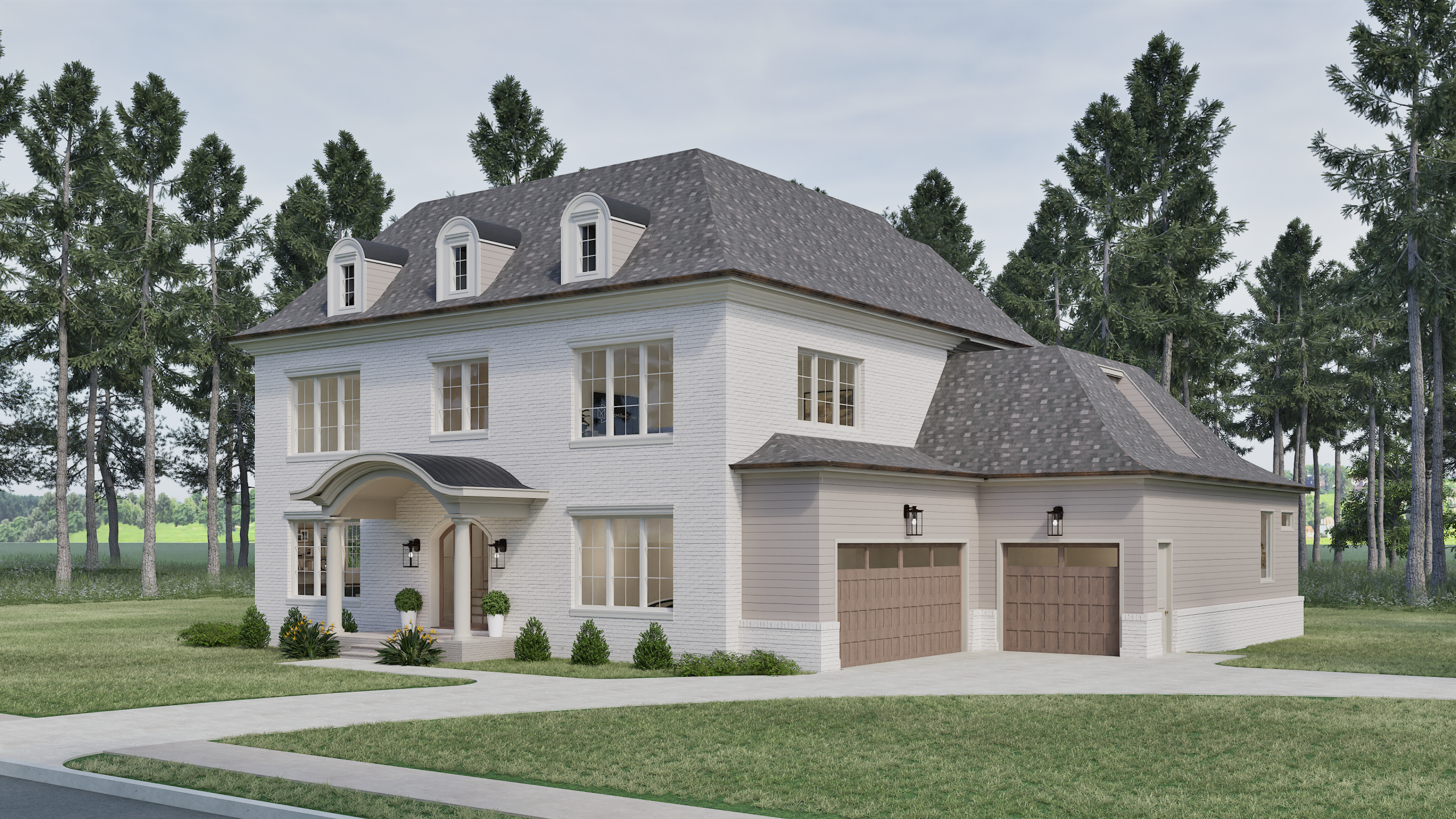 Elegant and timeless, this stunning two-story home blends classic architectural charm with modern comfort. The striking light brick
